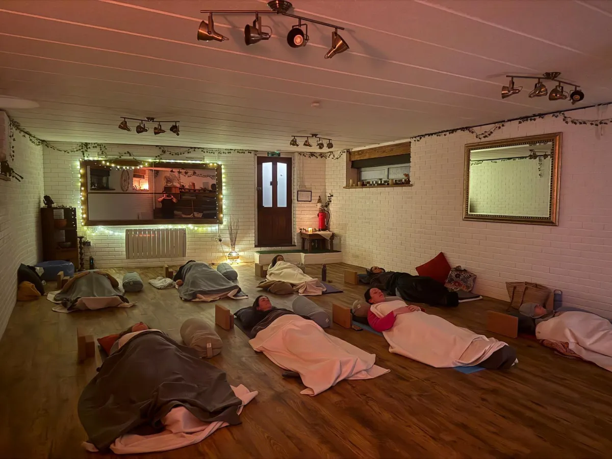 The guided yoga nidra experience takes you down into a deep brain wave state that moves you through the different brain wave patterns and layers of our being. It allows the mind and body to rest and restore.